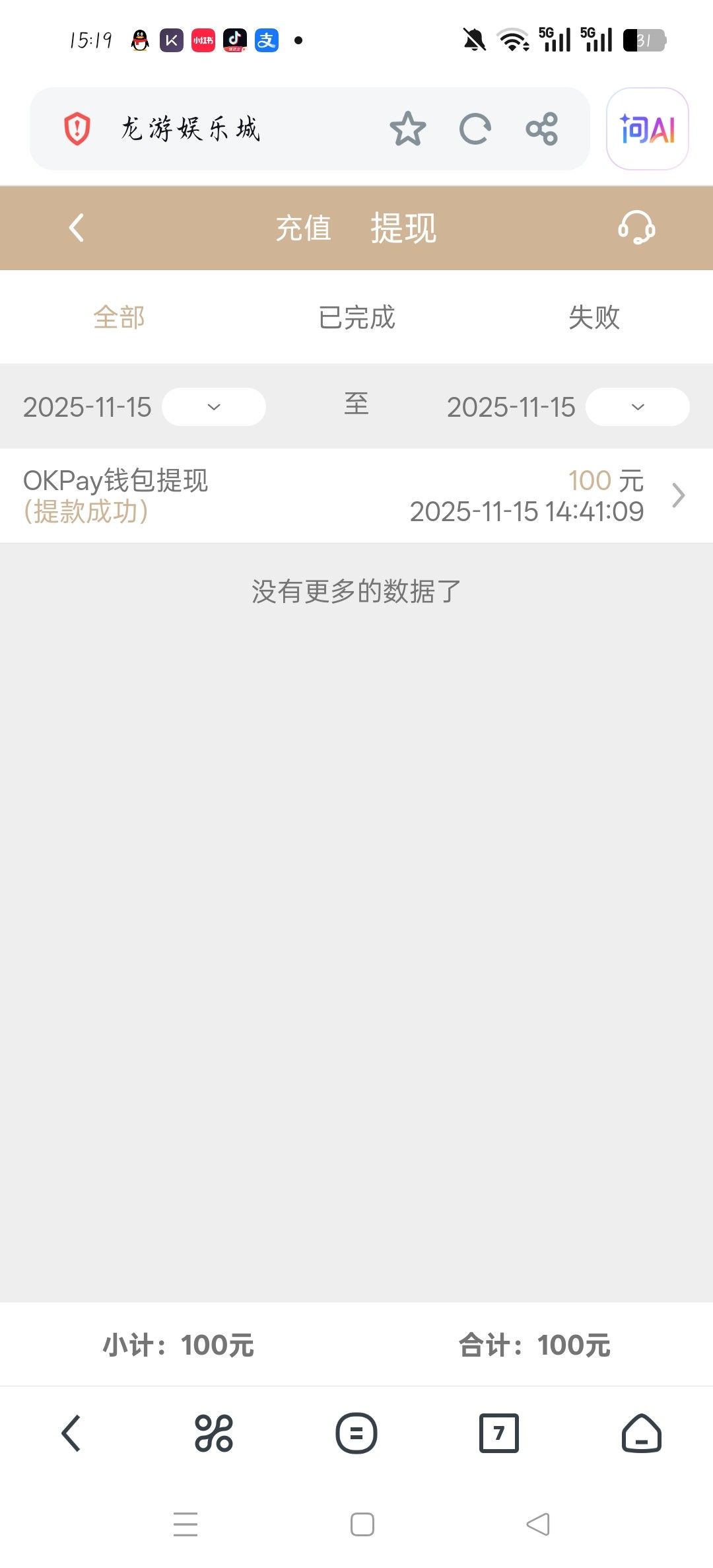 yangqijun123 这玩意儿水挺大的打到2000多提现500直接给我扣除了什么记录都没有了然后500也不见了 最后100的提 边提边玩提到账了400一直没到账的