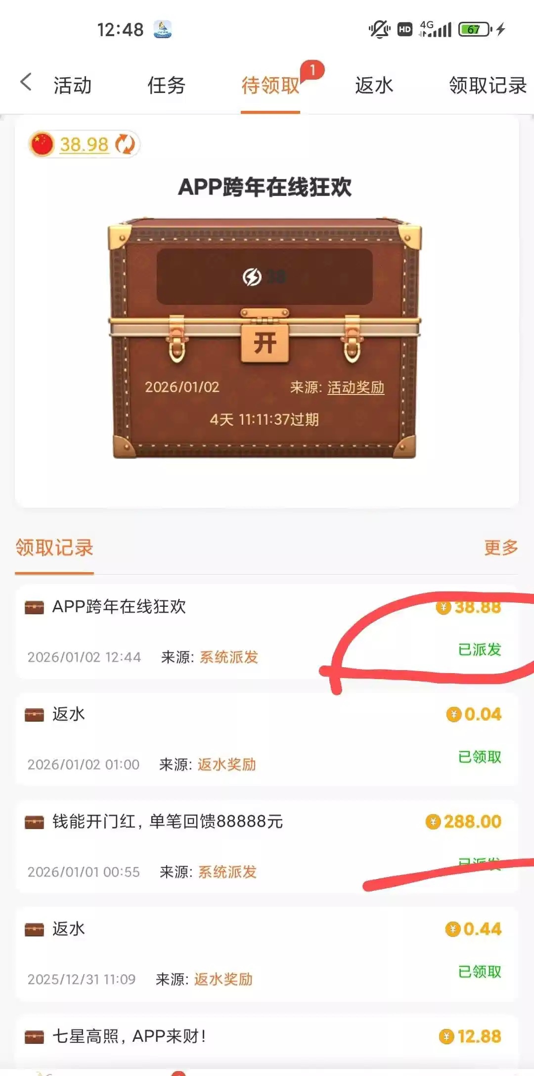 出款情况:到账
