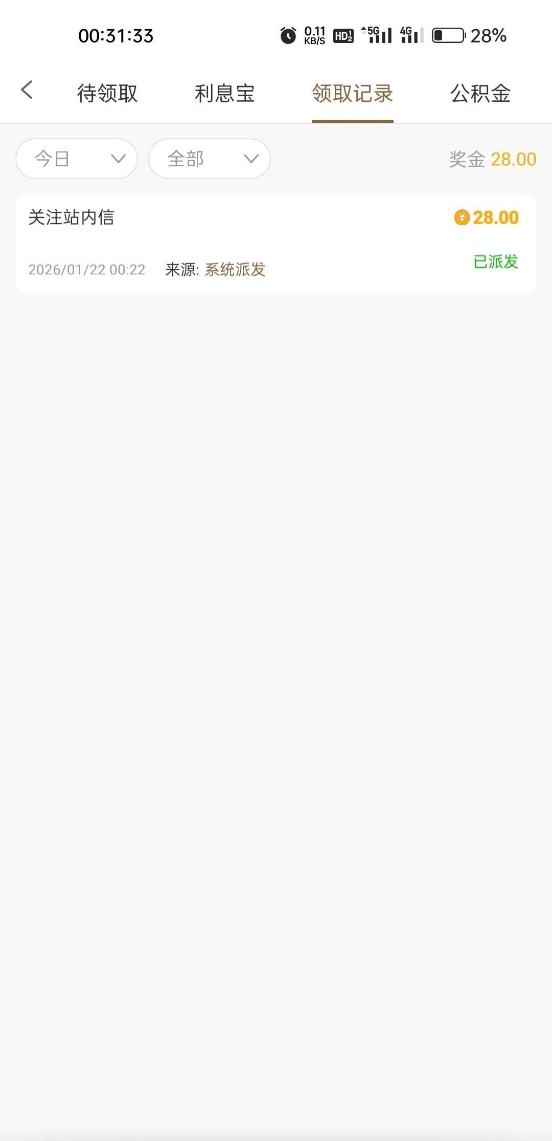 APP都卸载了,今天闲着没事又下载回来了,登上去一看,有一个站内信彩金